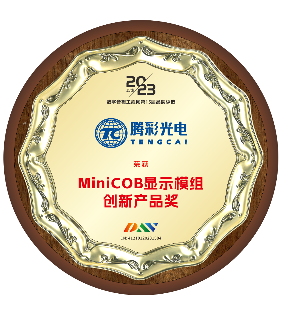 正是凭借如此高性能产品和全彩显示系统优势,腾彩光电才能在一众企业中脱颖而出,成功斩获DAV数字音视工程网“2023年度Mini COB 模组优秀制造商”、“2023年度COB智慧会议一体机知名品牌”、“2023年度Mini COB显示模组创新产品奖”三项大奖。荣誉的获得,不仅是对腾彩光电品牌实力的最大认可,也是对其未来持续创新的鼓舞激励。